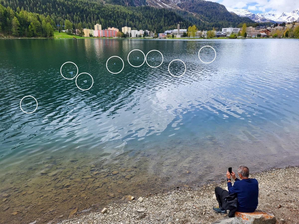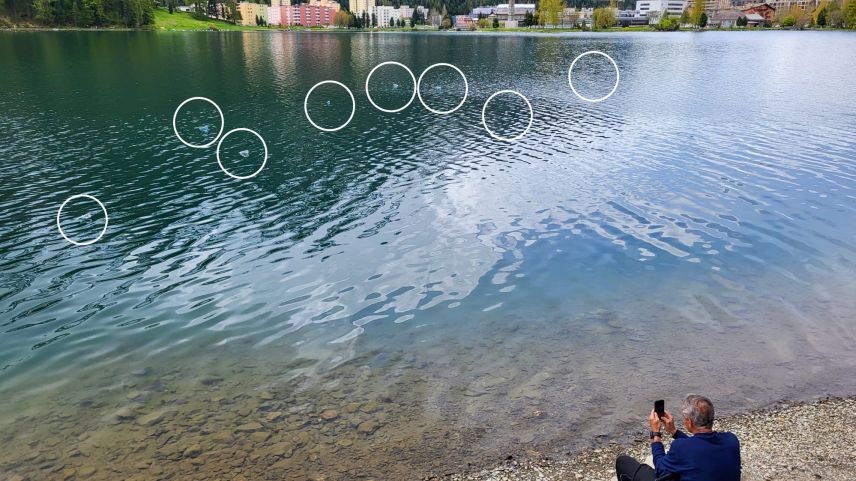 Benoit Pierroz (rechts) steigt mit seinem Begleiter Colin Hafen in den St. Moritzersee. Dort eröffnet sich ihnen eine mysteriöse Unterwasserwelt mit rund 1440 Jahre alten Bäumen. Fotos: Jon Duschletta