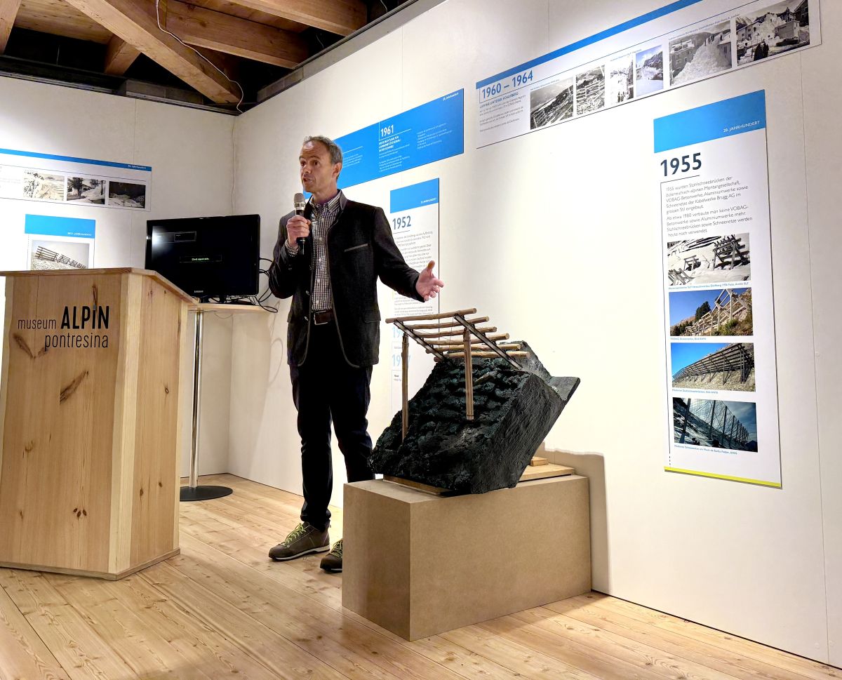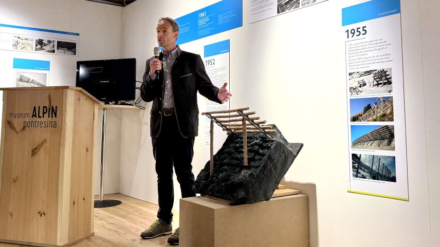 Die neue Sonderausstellung zu den Lawinenverbauungen in Pontresina ist eröffnet. Foto: Fadrina Hofmann