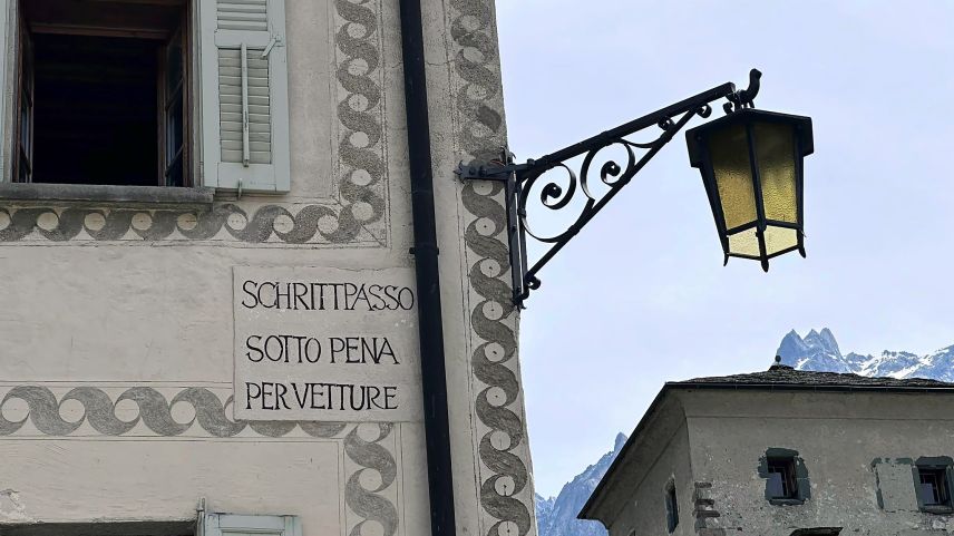 Zeugen aus längst vergangenen Tagen: Die Aufforderung, mit dem Auto im Schritttempo zu fahren. Fausto Chiesa