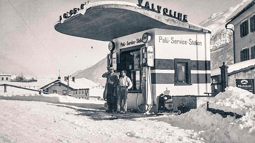 Die Tankstelle der ehemaligen Palü Garage in Samedan. Foto: Auto Pfister