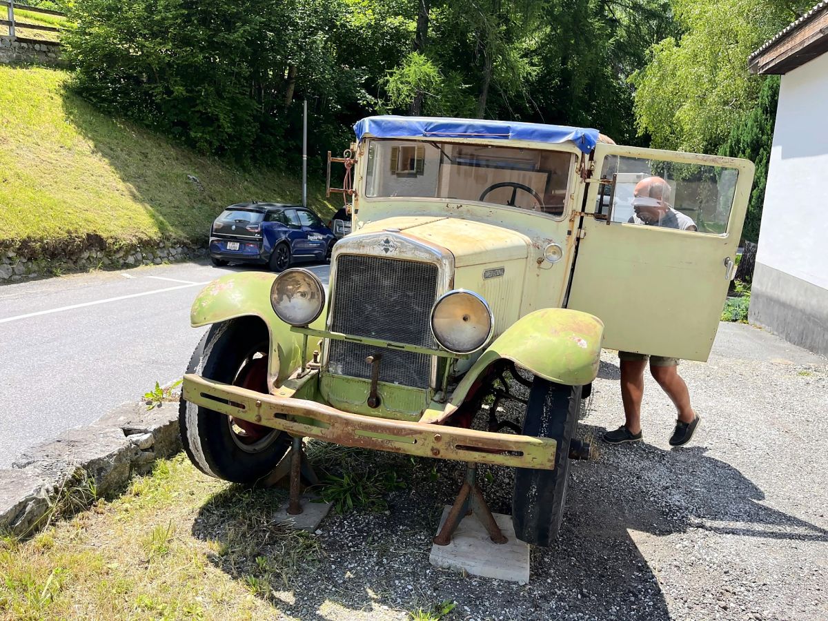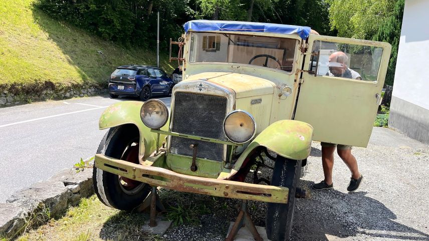 Der Lastwagen der früher Transporte rund um Sils machte wartet auf die Restauration. Fausto Chiesa weiss, wo er schrauben muss, damit der wieder Motor läuft.