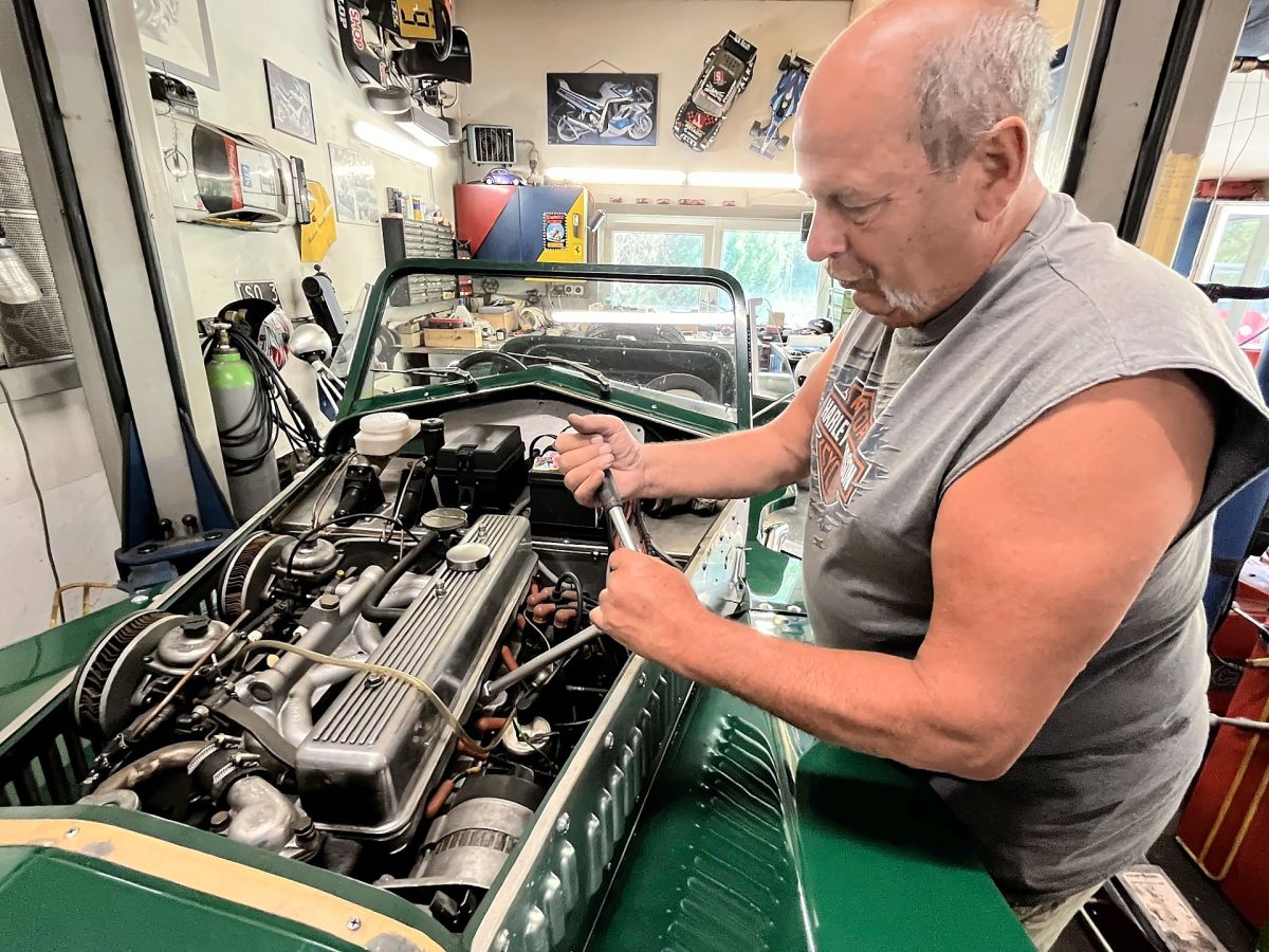 Fausto Chiesa lebt für Motoren: Der gelernte Automechaniker aus dem Bergell restauriert alte Fahrzeuge mit Leidenschaft und Präzision. Seine Werkstatt ist Rückzugsort, Schatzkammer und Denkmal für vergangene Zeiten auf Rädern. Hier restauriert er Fahrzeuge mit Herz und Hand.