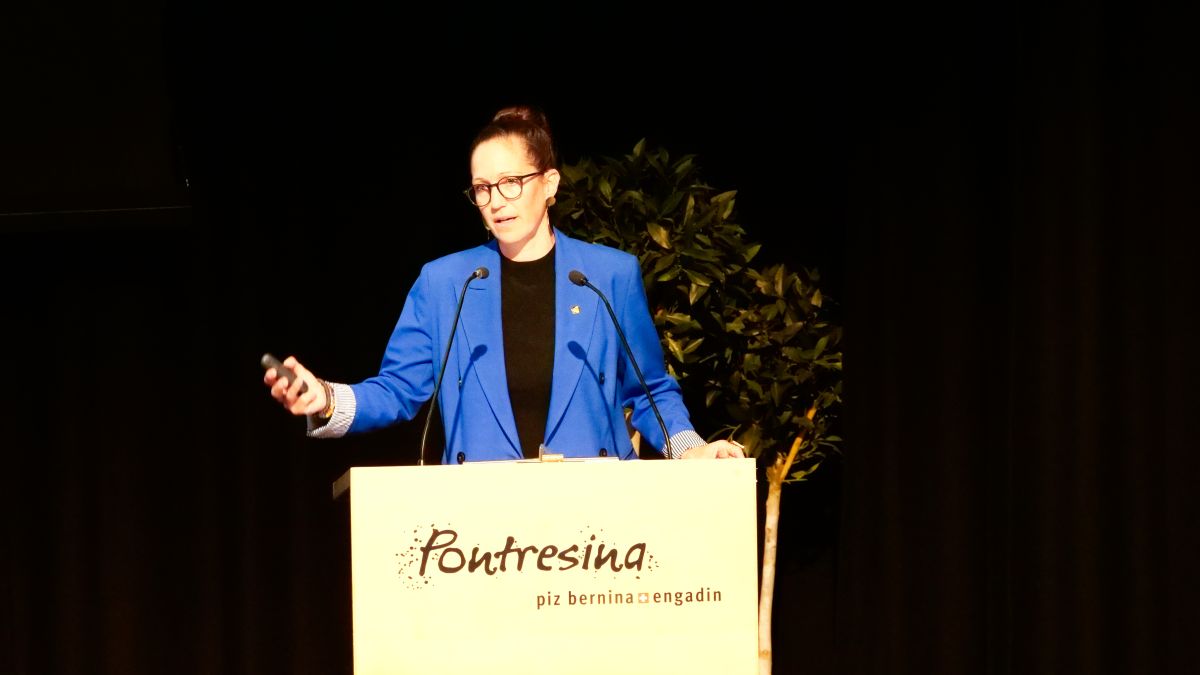 Gemeindepräsidentin Nora Saratz Cazin führte durch eine reichbefrachtete Gemeindeversammmlung. Foto: Jon Duschletta