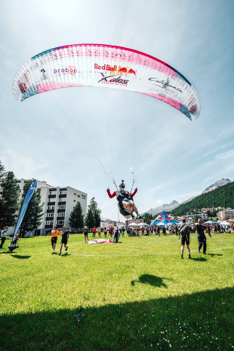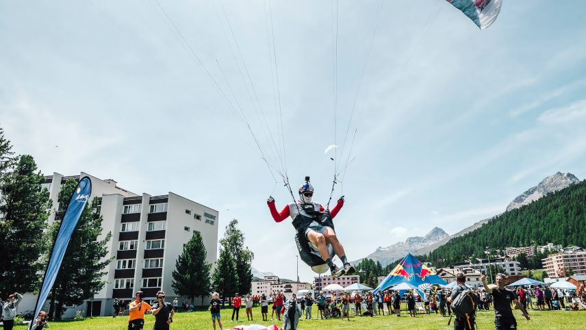 Das Red Bull X-Alps gilt als das härteste Abenteuerrennen der Welt. Im Rennen wird entweder dem Gleitschirm geflogen oder über Stock und Stein gelaufen. Die Teilnehmenden mussten dabei 2x St.Moritz passieren. Fotos: Sidario Balzarini