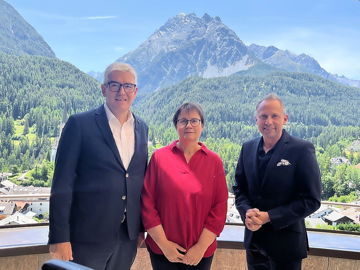 Zur Sprache kamen dabei unter anderem Fragen des Biodiversitäts- und Gewässerschutzes, der Umgang mit Neobiota, die Bedeutung und politischen Rahmenbedingungen des Schweizerischen Nationalparks sowie Massnahmen zur Klimaanpassung und zum Naturgefahrenmanagement. Auch mögliche weiterführende Formen der Zusammenarbeit zwischen Bayern und dem Kanton Graubünden im Bereich Umwelt- und Naturschutz wurden diskutiert. «Die Herausforderungen in der Umwelt- und Klimapolitik machen nicht an Landesgrenzen halt. Der direkte Austausch mit unseren Partnerregionen ist deshalb von grossem Wert», betont Regierungsrat Jon Domenic Parolini. Bayerns Umweltminister Thorsten Glauber betonte, dass Bayern die langjährige und vertrauensvolle Kooperation mit der Schweiz, insbesondere mit dem Kanton Graubünden schätze. «Bayern hat die Möglichkeit von den schweizerischen Erfahrungen zu profitieren, unter anderem im Naturgefahrenmanagement. Wir orientieren uns an der Schweiz und erarbeiten unter anderem einen Kommunikationskoffer Naturgefahren nach Schweizer Vorgaben.»