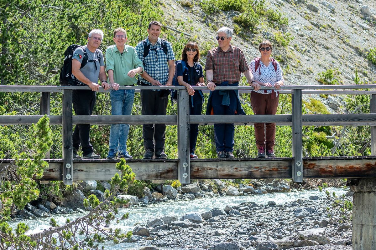 Bundesrat Albert Rösti folgte der Einladung des Schweizerischen Nationalparks (SNP) und wurde in Zernez unter anderem von Heidi Hanselmann, Präsidentin der Eidgenössischen Nationalparkkommission (ENPK), Domenic Toutsch, Gemeindepräsident von Zernez und Regierungsrat Jon Domenic Parolini begrüsst. Bei einem gemeinsamen Besuch der neuen Ausstellung im Nationalparkzentrum und einer Wanderung im Ofenpassgebiet erhielt Bundesrat Rösti Einblick in die Grundidee des Nationalparks und seine 111-jährige Entwicklung zu einem international herausragenden Wildnisgebiet. Die Vision der Parkpioniere, die Natur auf einer Fläche von 170 km2 komplett sich selbst zu überlassen und deren Entwicklung wissenschaftlich zu dokumentieren, war revolutionär und ist heute aktueller denn je. «Gerade in Anbetracht des Klimawandels und dessen Folgen sind die teils über 100 Jahre alten Datenreihen weltweit einzigartig und tragen zum Verständnis der sich verändernden Naturprozesse bei», betonte Heidi Hanselmann.