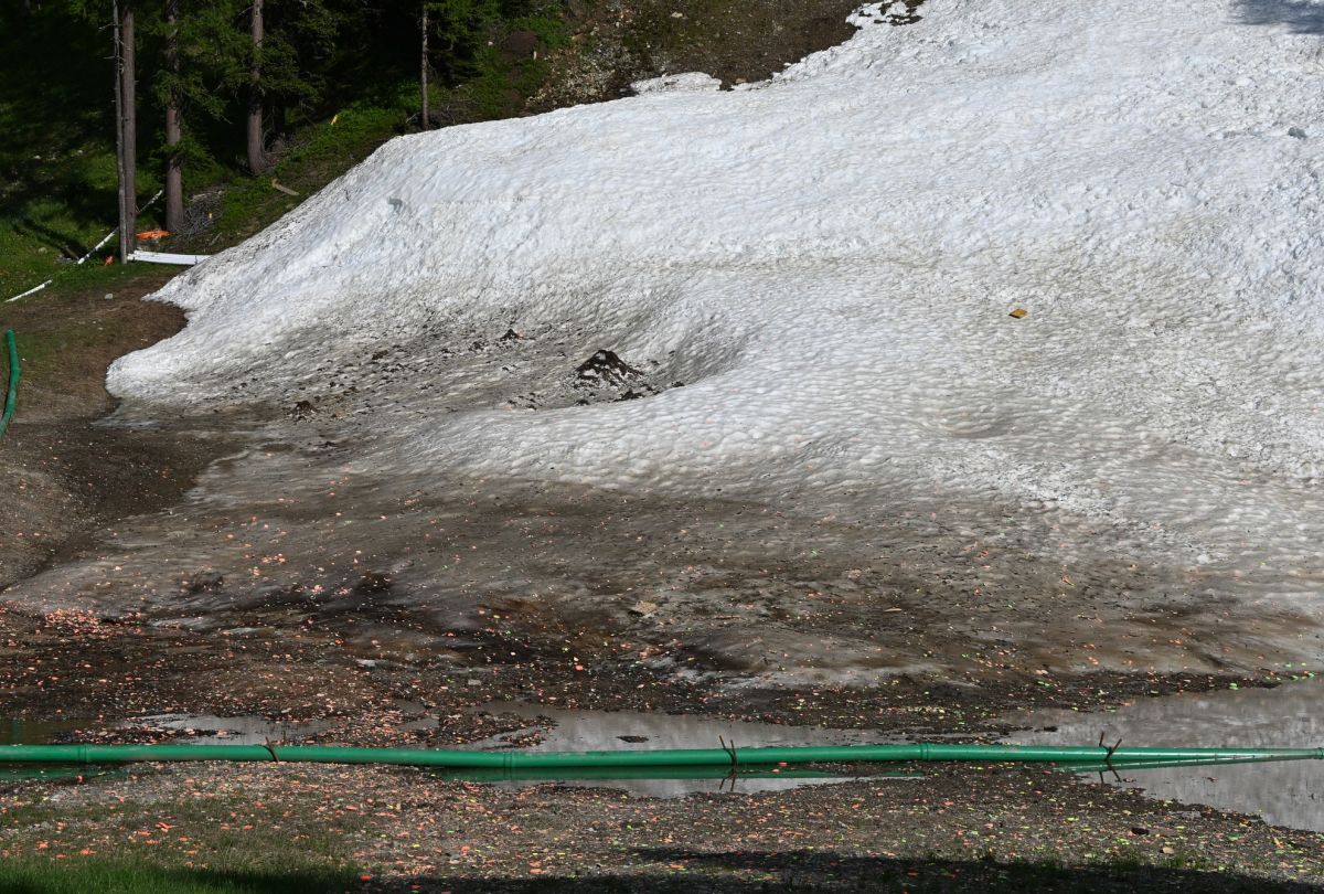 Wer vom Lej Nair hinunter zum Stadion der früheren Olympiaschanze läuft, staunt: Zum einen über den Schnee, der auch jetzt im Hochsommer noch auf dem Gelände liegt, zum anderen über die Unordnung, die dort herrscht. Überall im Gelände ...