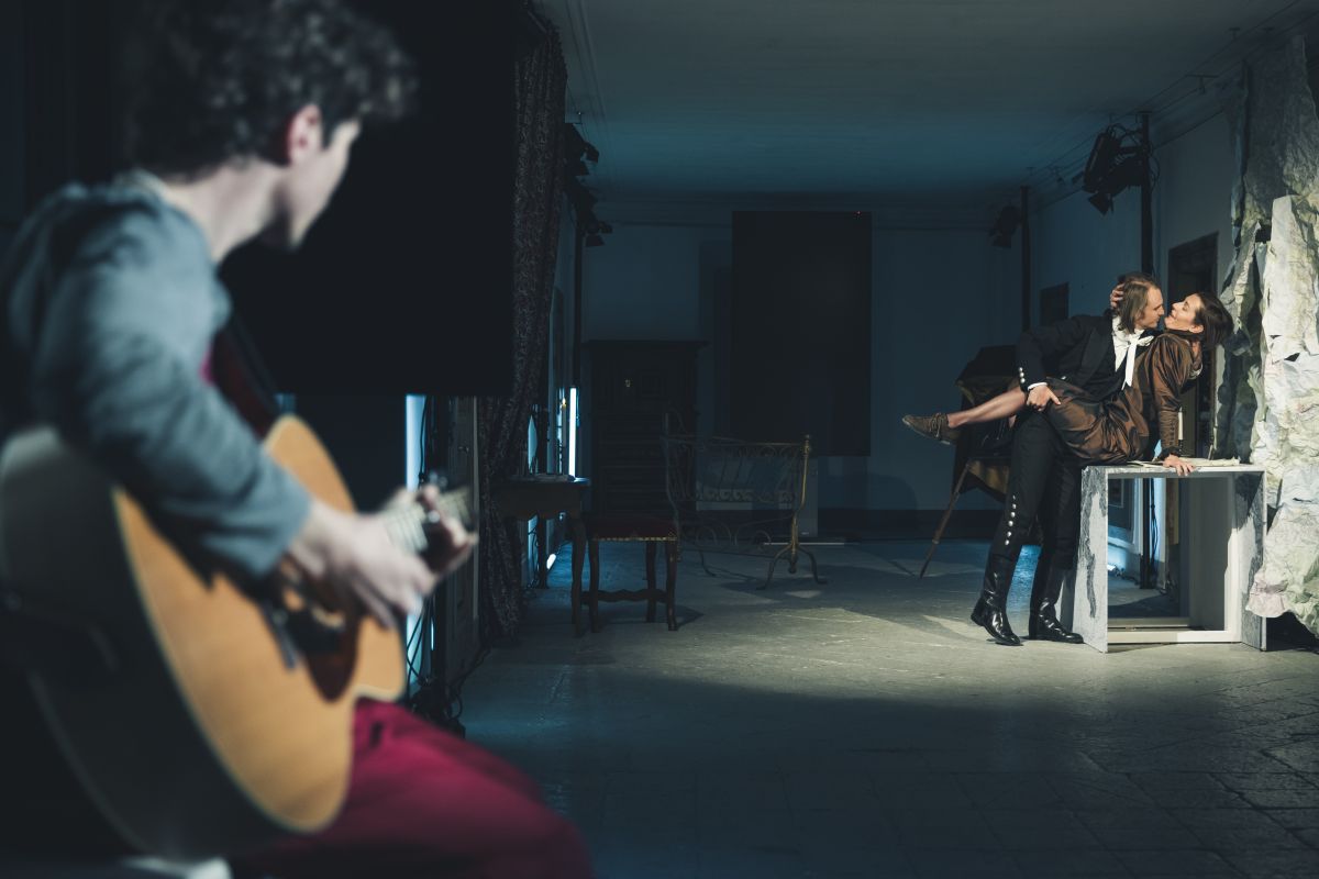 Das Stück hat Jonathan Ferrari auf Deutsch geschrieben, gespielt wird es überwiegend auf Puter, mit deutschen Übertiteln. Felicitas Heyerick, welche in die Rolle der Jacobea schlüpft, hat zuhause nie Romanisch gesprochen. Sie lebte nur bis zu ihrem siebten Lebensjahr in einem romanischen Umfeld. «Ich hatte den Anspruch, diese Rolle auf Puter zu spielen, und hatte zum Glück zwei super Coaches», erzählt sie. Die sprachliche Herausforderung meistert sie mit Bravour. Neben Jonathan Ferrari steht auch Musiker Gianni Tschenett aus Celerina auf der Bühne. Er spielt den Diener Jean-Marc, aber in erster Linie macht er die musikalische Begleitung. Erstmals hat er für ein Theaterstück die Musik komponiert. «Ich habe unter anderem mit den Thematiken Macht, Heimat und Liebe auseinandergesetzt», erzählt er. Die Musik begleitet die Geschichte nicht nur, sie trägt sie mit.