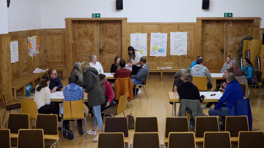 Eindrücke der projektbezogenen Veranstaltung eines Runden Tisches in Scuol von Anfang Oktober 2024. Foto: Michael Steiner/fmr