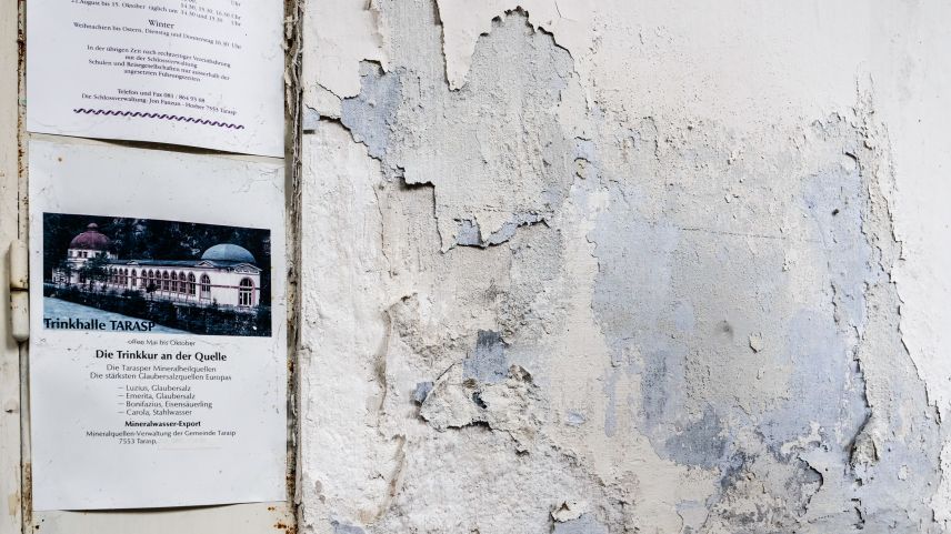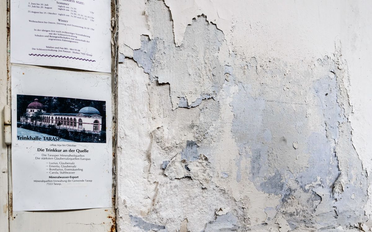 Der Blick in den Kuppelsaal der Büvetta Tarasp zeigt die Dringlichkeit einer baulichen Sanierung. Fotos: Jon Duschletta