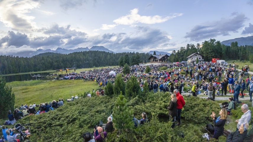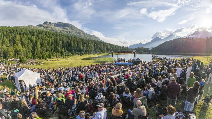 Diese unvergleichliche Stimmung ist für viele der Hauptgrund, dass sie Jahr für Jahr zu den Gratis-Konzerten des Festival da Jazz an den Lej da Staz pilgern. Ob am frühen Morgen zu gregorianischem Gesang, zum Frühstück bei Harfenklängen von Andreas Vollenweider oder bei Sonnenuntergang mit französischem Nouvelle Chanson - die Kulisse ist immer wieder einfach spektakulär.