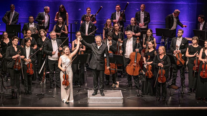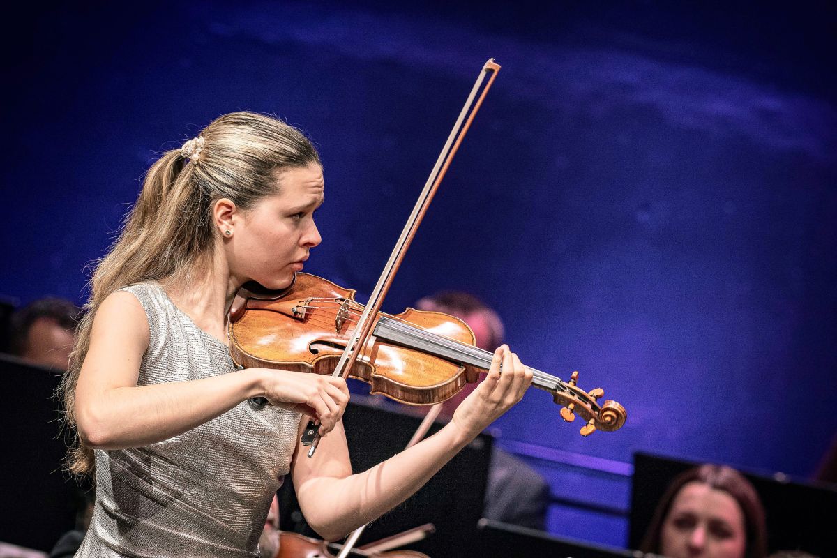 Am Eröffnungskonzert des Engadin Festivals war die junge Geigerin Anna Naomi Schultsz zu erleben. Sie spielte unter der Leitung ihres Vaters, Jan Schultsz, und mit dem Philharmonischen Orchester Pilsen. Fotos: Quim Vilar