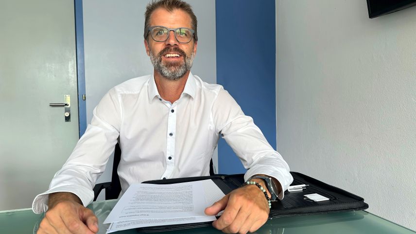 Adrian Barbüda es president dal cussagl administrativ da la Bogn Engiadina Scuol SA e declera la visiun per adattar la sporta cun ün nouv bogn per uffants e famiglias (fotografia: Nicolo Bass).