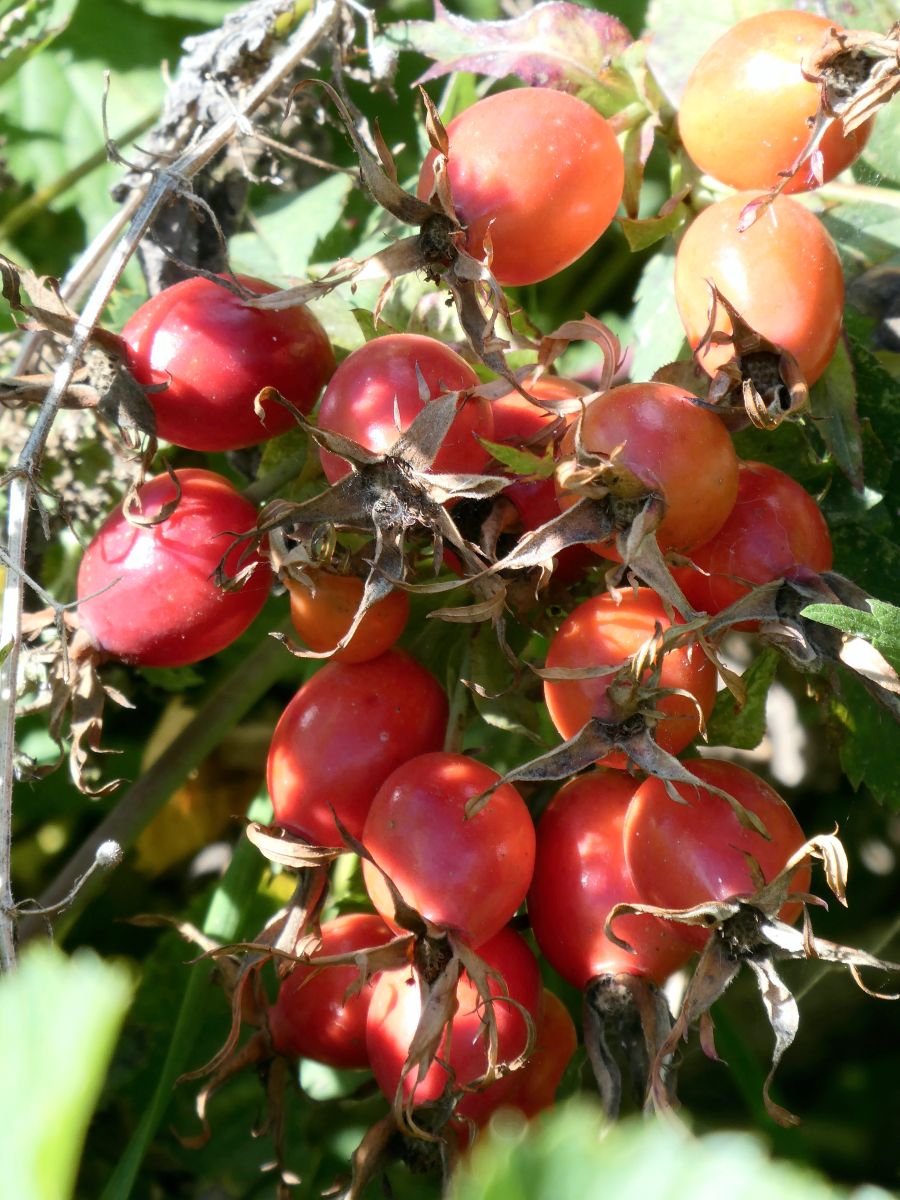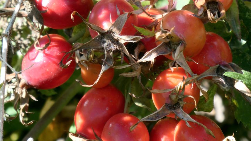 Die Hagebutte, ein essbares Rosengewächs, ist reich an Vitaminen und kann vielseitig in der Küche verwendet werden, beispielsweise für Marmeladen, Tees und als Aromastoff in Essigen.
