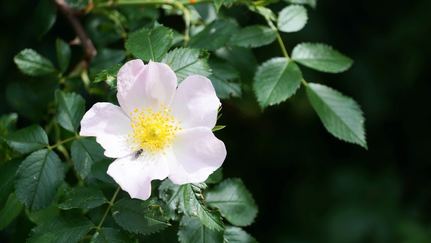 Aus der Hagerose mit rosa-weisslichen Blüten vor dem Laub werden schmackhafte Beeren. Fotos: Jürg Baeder