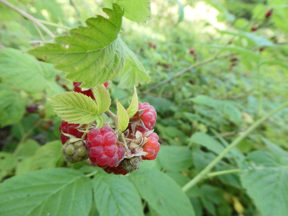 Die Himbeeren (Rubus ideaus) bilden einen Strauch von ein bis zwei Meter Höhe. Die Stängel haben zahlreiche kleine Stacheln. Die Blätter sind drei bis fünzählig, unterseits fein behaart und fast weiss. Die Oberseite der Blätter ist grün bis ...