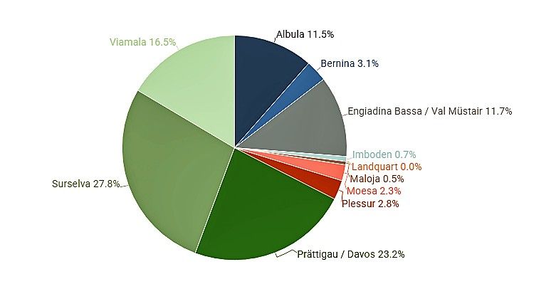 Basis für die Berechnung des Ressourcenausgleichs 2026 bildet das sogenannte Ressourcenpotenzial (RP) der 100 Bündner Gemeinden. Dieses wird gegenüber 2025 um 54 Millionen auf neu 962,6 Millionen steigen. Gemäss dem kantonalen Departement für Finanzen und Gemeinden tragen die Einkommens- und Vermögenssteuern der natürlichen Personen sowie die Quellensteuern zusammen gut 68 Prozent oder 658,4 Millionen Franken zum RP bei. Weiter fliessen 107,6 Millionen Unternehmenssteuern, 61,4 Millionen Wasserzinsen sowie die mit einem einheitlichen Wert von 1,5 Promille berücksichtigten Steuerwerte der Liegenschaften in der Summe von 135,3 Millionen in die Berechnung ein.