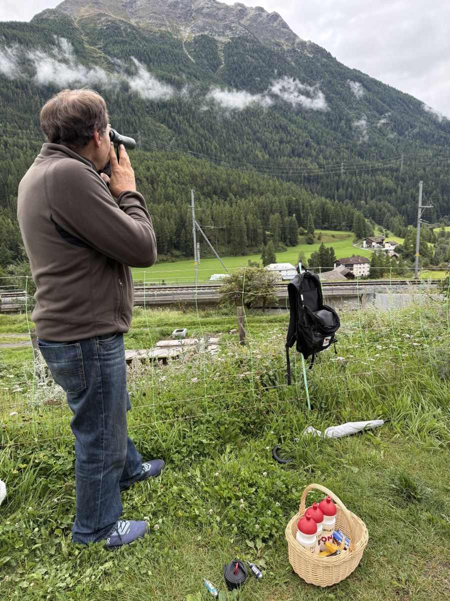 Nass und kühl ist es an diesem Samstagmorgen. Dennoch stehen die Familien von Nic und Tinetta Thanei und der Vater von Gian Caviezel am Dorfrand von Lavin, um zu warten, bis die Rennteilnehmer und die Rennteilnehmerin vorbeifahren. Reto Thanei ist mit einem Korb gekommen. «Ich werde ständig gefragt, ob ich ‹Pilzen gehe›», sagt er schmunzelnd. Aber nein, im Korb sind drei Trinkflaschen mit Süssgetränken, Bananen, ein Veloschlauch, CO2-Patronen und ein Taschenmesser, falls ein Pneu geflickt werden müsste. Der Korb zieht den knapp zweijährigen Enkel magisch an, doch Reto Thanei weist ihn sofort darauf hin, dass die Sachen für Mama und Papa seien, die gerade mit dem Bike unterwegs seien.