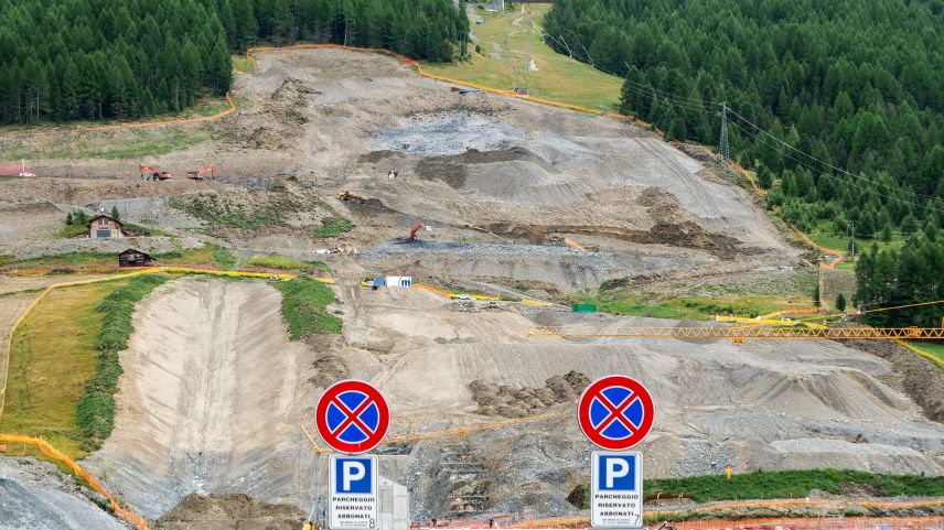 So zeigt sich aktuell das Gebiet Mottolino, wo mit schwerem Gerät die Infrastruktur für die Freestyle-Disziplinen gebaut wird. Trotzdem sprechen die Verantwortlichen von nachhaltigem Handeln. Fotos: Jon Duschletta