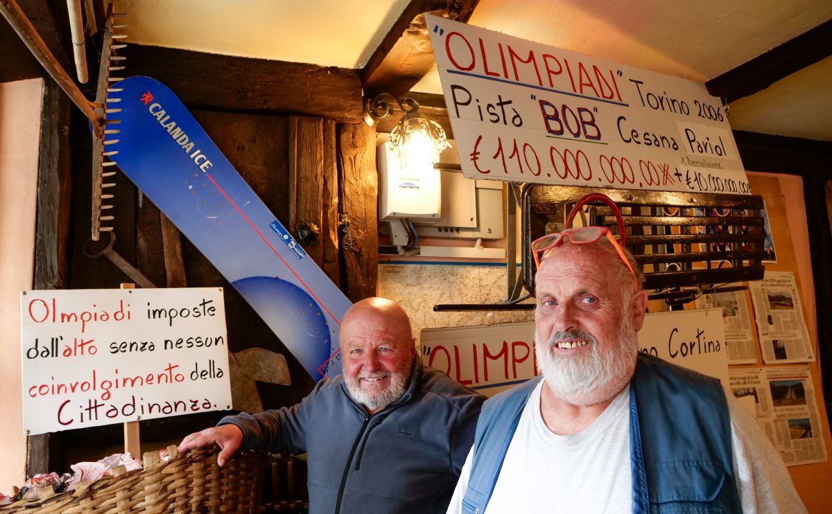 Savio Peri (links) und Carletto Bormolini sprechen in Livigno offen von einem ökologischen Umweltdesaster und fehlender Nachhaltigkeit bei der Umsetzung der Olympischen Winterspiele Milano Cortina 2026.
