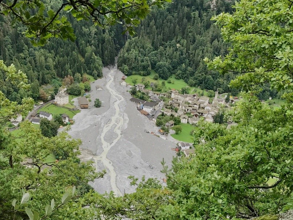 Ein schon 2011 errichtetes Auffangbecken und die schnelle Alarmierung der Bevölkerung verhinderte damals in Bondo Schlimmeres. Dennoch wurden durch den Hauptmurgang und durch zwei weitere, grössere Murgänge in den darauffolgenden Tagen in Bondo und im Weiler Spino zwölf Gebäude zerstört und rund 90 weitere beschädigt, darunter ein Schreinereibetrieb. Verschüttet wurden auch die alte wie die neue Kantonsstrasse und auch die historische Brücke- «Punt» zwischen Bondo und Promontogno sowie Wasser- und Strominfrastruktur wurden dabei zerstört.