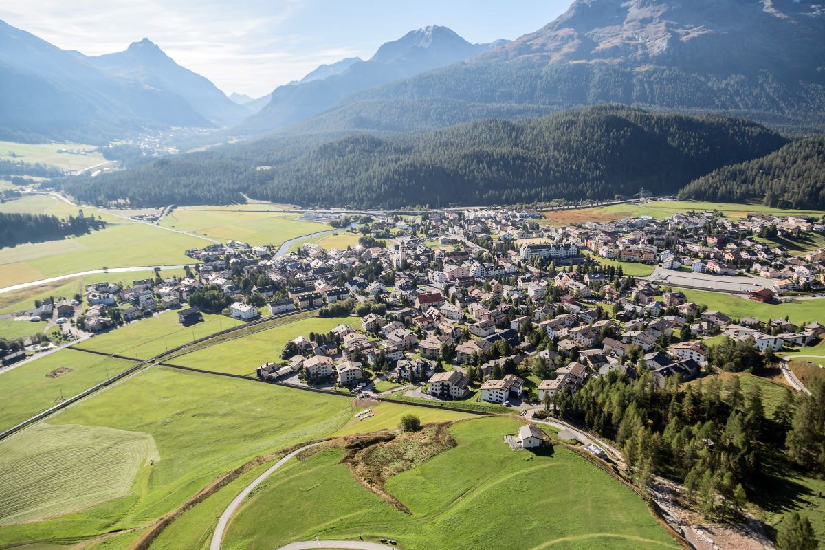 Celerina steht vor dem Abschluss der Totalrevision der Ortsplanung. Auf diesem Bild sind die Freiräume im Siedlungsgebiet sowie zwischen den alten Dorfkernen nach wie vor zu sehen. Bereits zurückgebaut ist die ARA. Foto: Engadin Tourismus