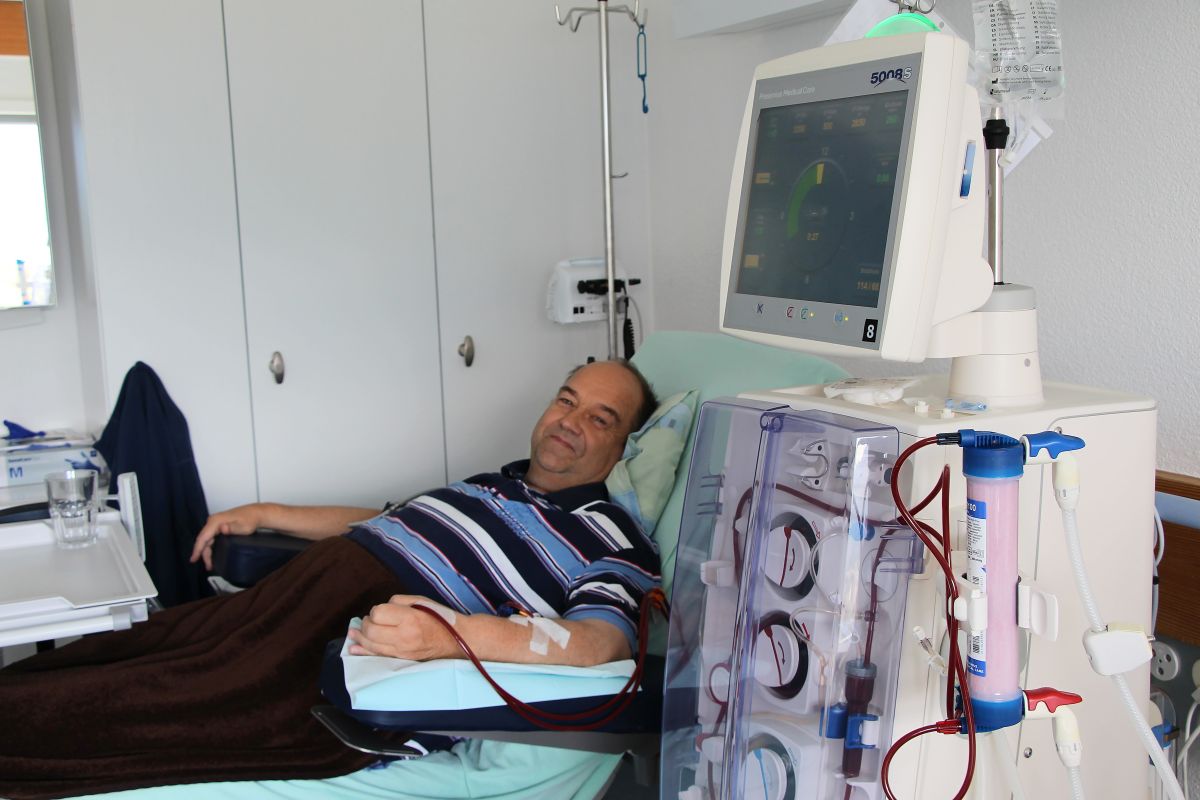 Dialyse bei Herrn Loebe: eine externe Niere filtert aus dem Patientenblut die Abfallprodukte und entzieht überschüssiges Wasser.