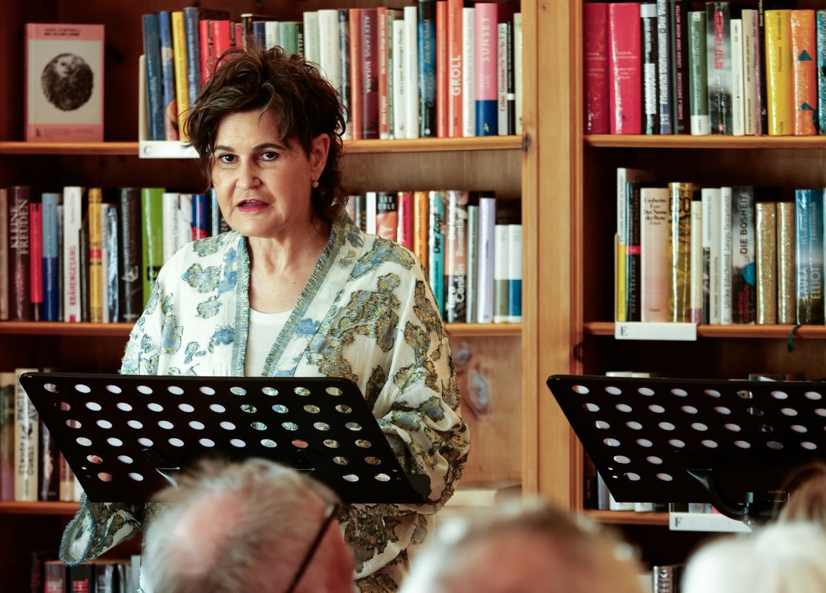 Romana Ganzoni während der Lesung "Die Bergführerin" in der Biblioteca Engiadinaisa in Sils.