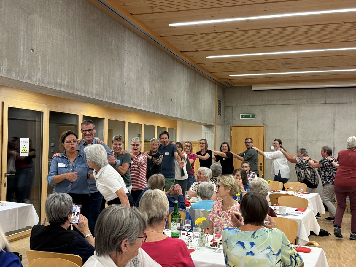 Allegr’atmosfera da festa dürant la sairada dals voluntaris illa chüra dal Center da Sandà Engiadina Bassa a Scuol. fotografia: CSEB