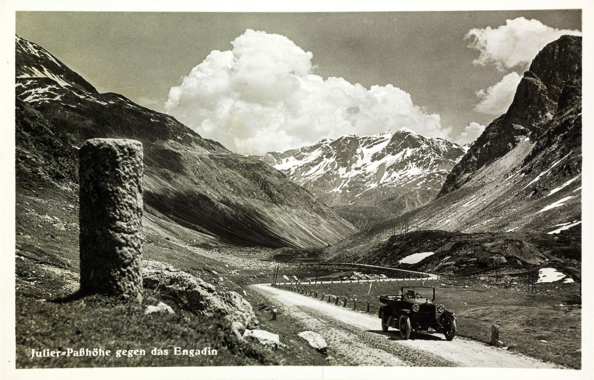 Mit dem Auto über den Julierpass zu fahren, war eine einsame Angelegenheit. Foto: ETH-Bibliothek Zürich, Bildarchiv