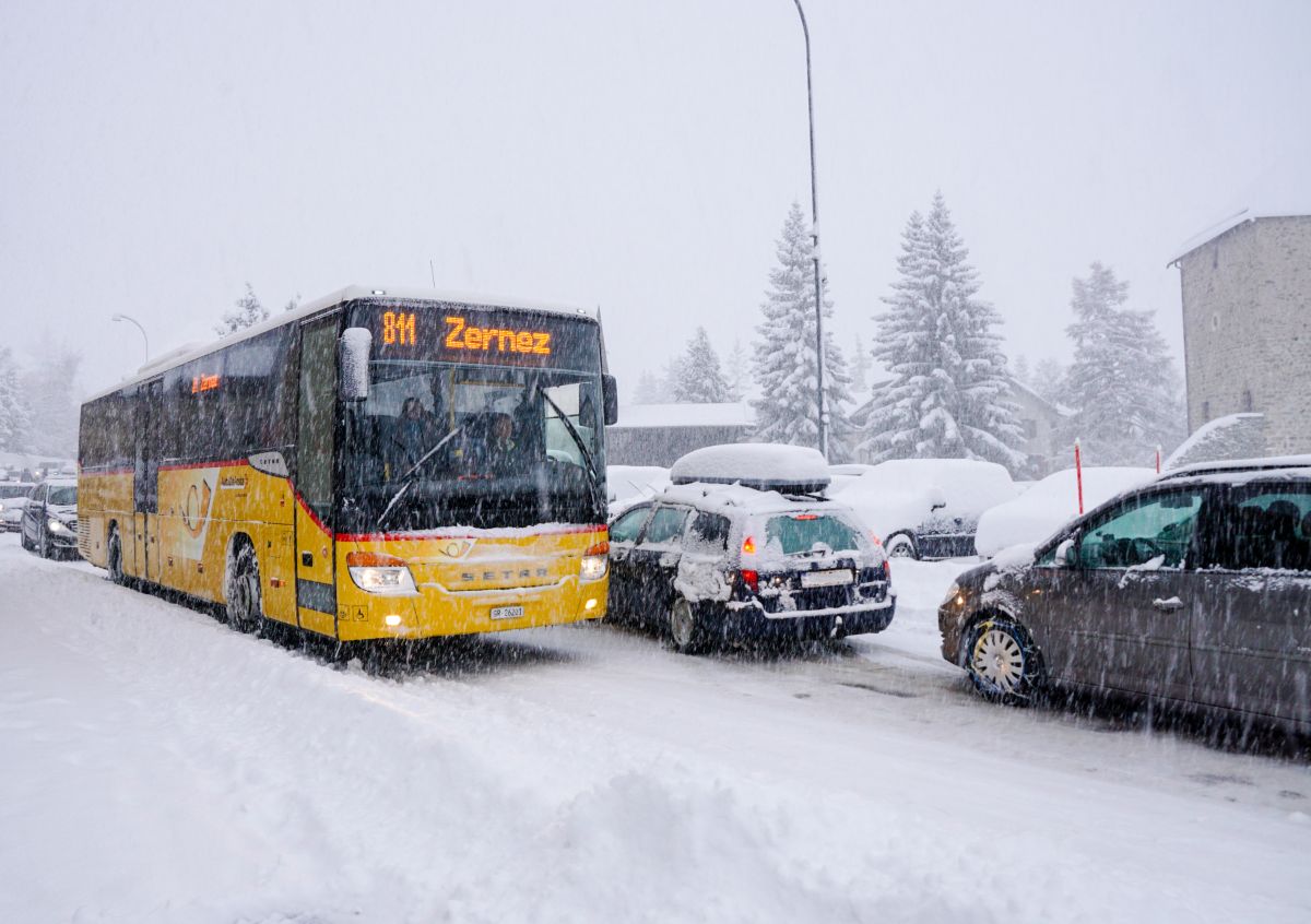 PostAuto ist vom Kanton mit der Organisation des Olympia-Shuttledienstes von und nach Livigno beauftragt worden. Je nach Witterung kann dies im Februar eine grosse Herausforderung darstellen. Archivbild: Jon Duschletta
