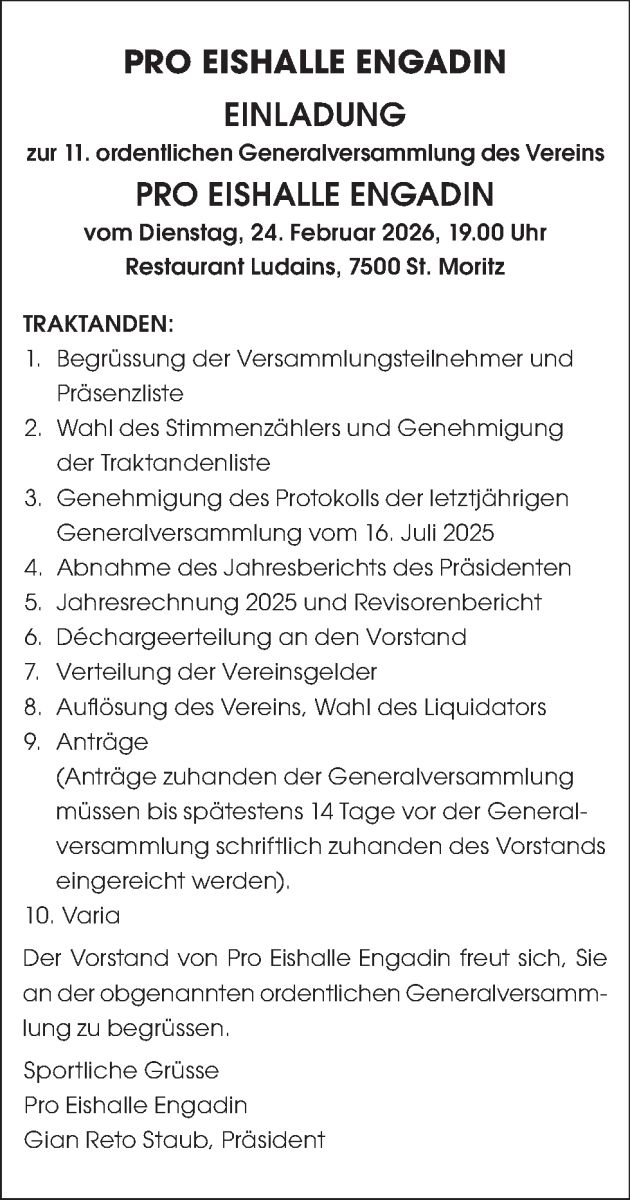 Der SGO-Stiftungsrat wird nun das Nachlassverfahren vorbereiten und bei den Aufsichtsbehörden eine Nachlassstundung beantragen. Zudem wird er gemeinsam mit der Klinik Gut AG in St. Moritz und dem Kantonsspital Graubünden die nächsten Schritte für das Zusammenführen der medizinischen Angebote klären. Über das weitere Vorgehen in Bezug auf das zukünftige Leistungsangebot wollen SGO, Klinik Gut AG und Kantonsspital Graubünden voraussichtlich Mitte Dezember 2025 informieren. «Ziel bleibt, eine Lösung zu finden, die Stabilität schafft, die qualitativ hochstehende Gesundheitsversorgung im Oberengadin soweit möglich sicherstellt und möglichst viele Arbeitsplätze erhält», so Selina Nicolay, Stiftungsratspräsidentin der SGO.