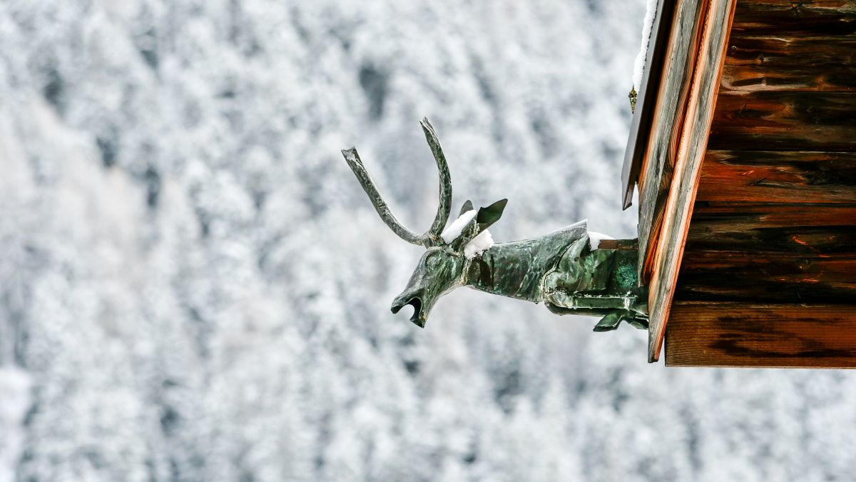 Gian Pedrettis plastische Werke sind im Oberengadin hier und dort auch im öffentlichen Raum zu sehen. Hier ein Wasserspeier in Hirschform an der Chesa Gian Casty in Zuoz. Foto: Jon Duschletta