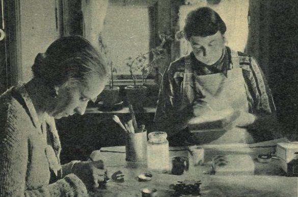 Die Fertigkeiten für diese Arbeiten erlernten die Frauen in Abendkursen bei Maria Bass. Ihr Anliegen war, den Frauen nebst einer Verdienstmöglichkeit auch ihren Sinn für handwerkliche Schönheit zu wecken: «Das Gefühl für das Einfache und Echte, vielleicht mit der Zeit auch die Lust am eigenen Entwerfen», wollte die Kunstmalerin fördern.