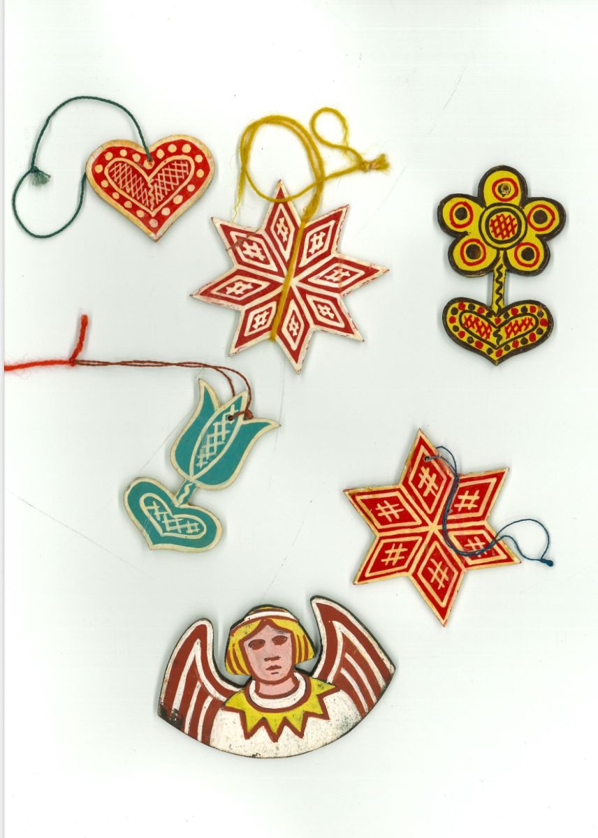 Nur noch in wenigen Engadiner Stuben hängt der originale Engadiner Holzschmuck am Weihnachtsbaum. Maria Bass (1897–1948) entwarf ihn seit 1939 für die «Lavur chasauna Schlarigna». «Dieser in unseren Ohren so wohlklingende Name heisst auf Deutsch nichts anderes als ‹Heimarbeit Celerina», steht in einem Zeitungsartikel von 1941, der lediglich mit «Claudine» unterzeichnet ist. Im Artikel erzählt die Autorin von ihrem Besuch in der Werkstatt, in der Frauen im Nebenverdienst verschiedene Gegenstände herstellten: bemalte Spanschachteln, Spielzeug-Dörfer, Zündholzschachteln und eben auch Christbaumschmuck.