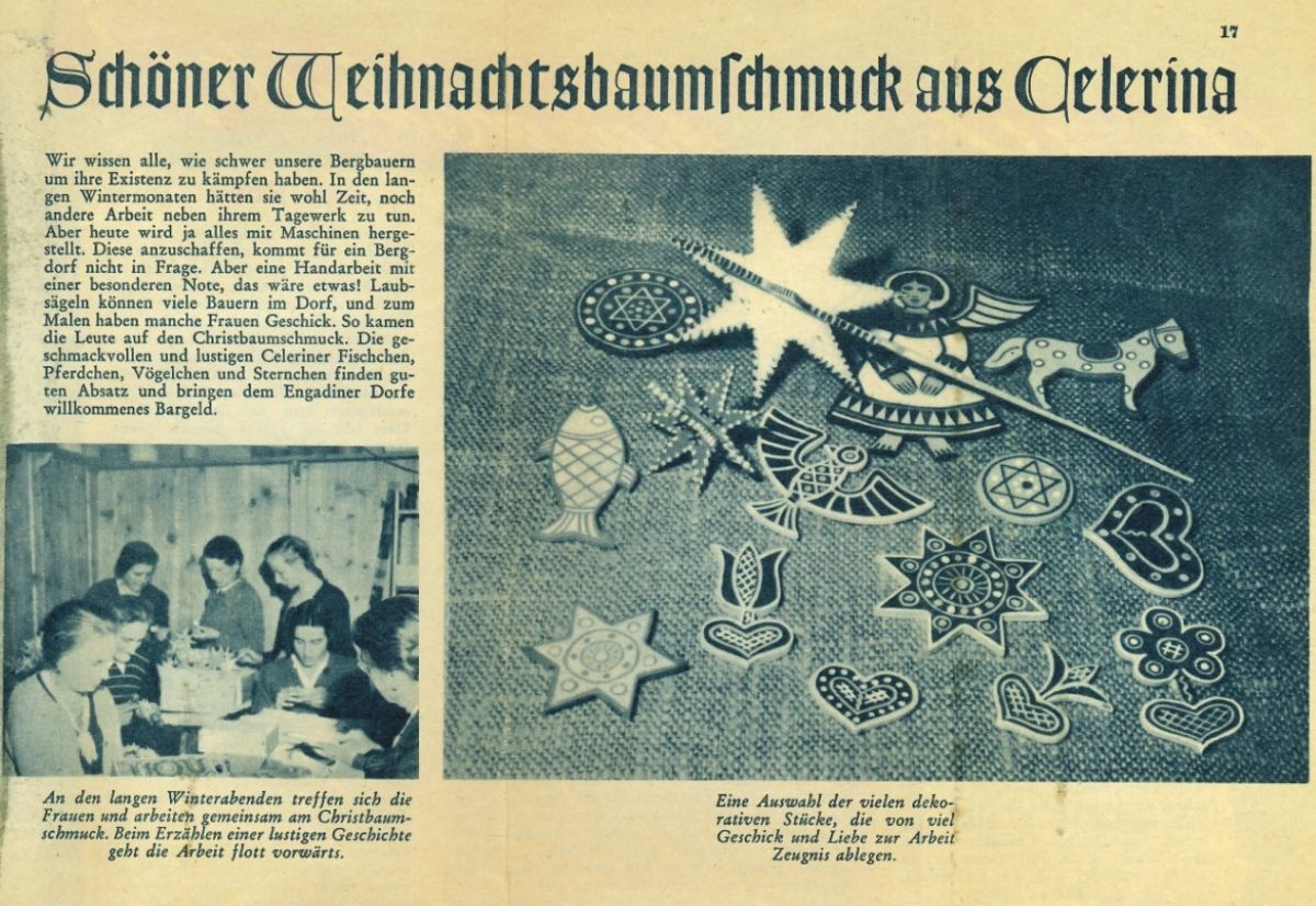 Obwohl Figuren und Maltechnik einfach waren, kam der festliche Christbaumschmuck bei der kriegsgebeutelten Bevölkerung gut an. «Die geschmackvollen und lustigen Celeriner Fischchen, Pferdchen, Vögelchen und Sternchen finden guten Absatz und bringen dem Engadiner Dorfe willkommenes Bargeld», so steht es in einem von damals Zeitungsartikel.