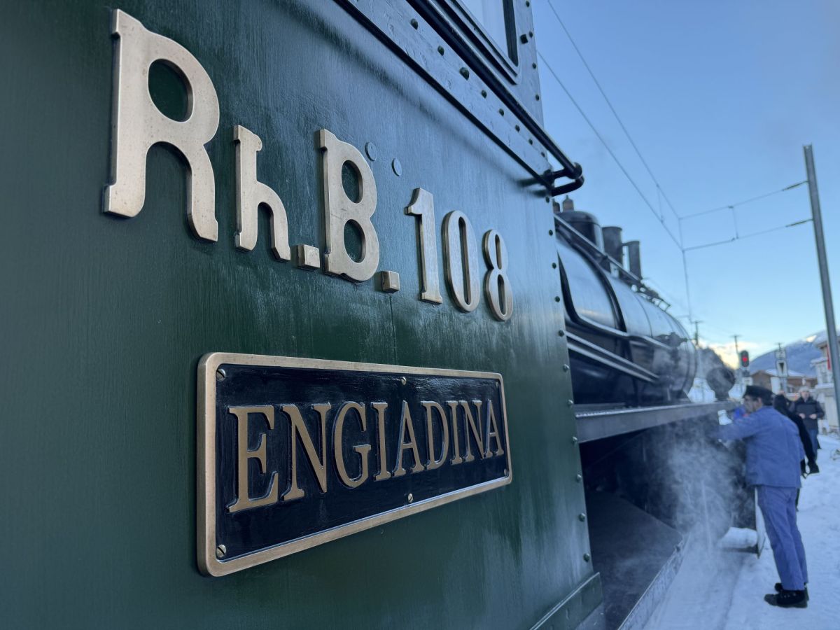 Bahnhof Samedan am Samstagmorgen kurz vor 10 Uhr. Freudige Aufregung herrscht am Bahnsteig, denn die «Engiadina Nr. 108» steht schon bereit zur Abfahrt. Die alte Dame, Jahrgang 1906, wird an diesem Tag von Lokführer Mario Risch geführt, unterstützt von Heizer Martin Balz. Beide sind authentisch im blau-weissem Tenue gekleidet. Sie haben eine spezielle Ausbildung absolviert, zuerst als Heizer und dann die als Lokführer.