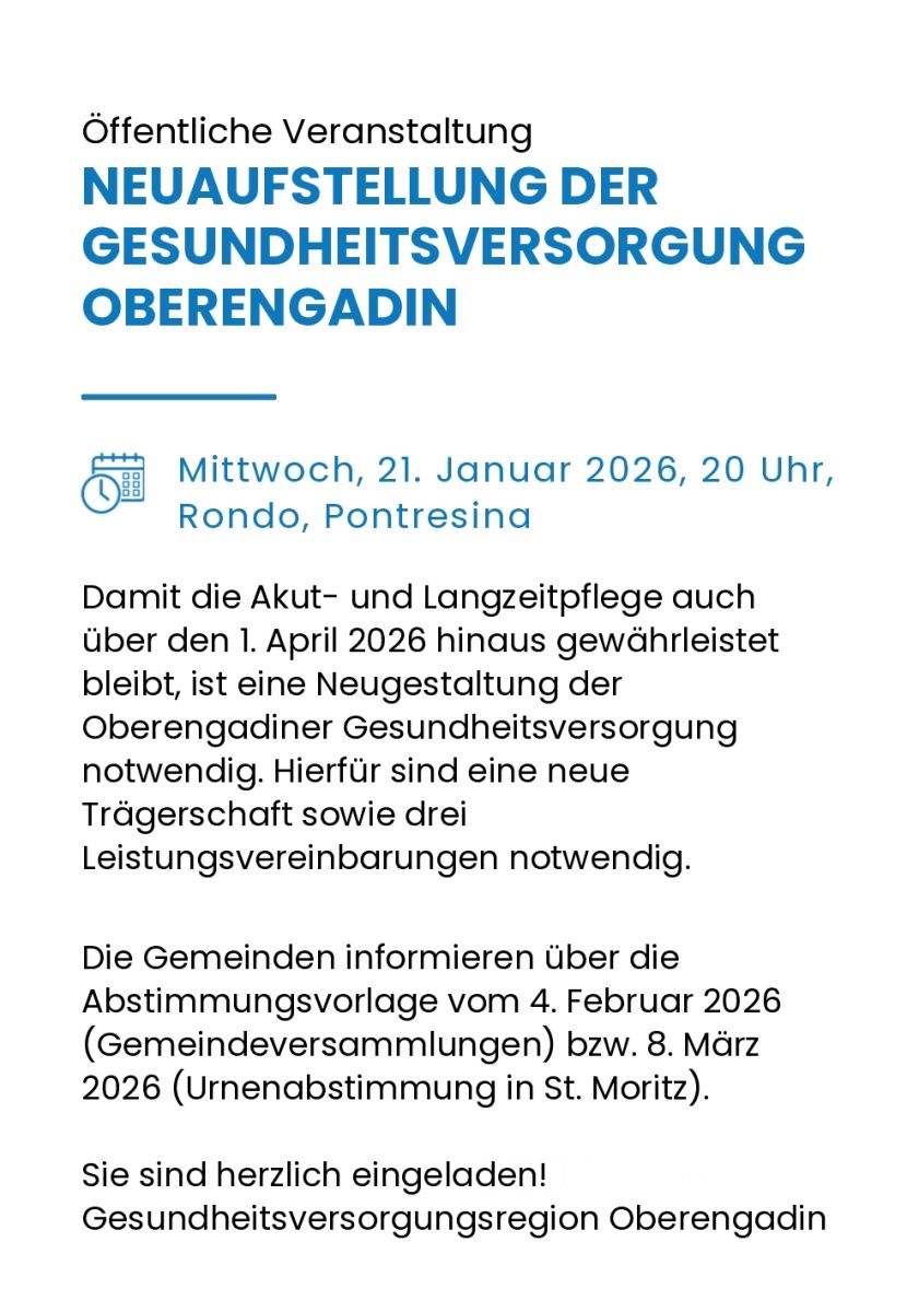 Eine deutliche Zunahme sowohl ambulanter als auch stationärer Fälle gab es ab 26. Dezember auch im Spital Oberengadin. «Der Patientenstrom führte dazu, dass alle Betten belegt waren und zeitweise eine Bettenknappheit bestand», antwortet Gianna Raselli, Co-Leiterin Marketing und Kommunikation der Stiftung Gesundheitsversorgung Oberengadin (SGO). Im Vergleich zu den vergangenen Jahren sei die Situation insbesondere im stationären Bereich anspruchsvoller und für das Spitalpersonal arbeitsintensiver gewesen. «Im neuen Jahr wurden rund zwei Drittel mehr stationäre Fälle als im letzten Jahr und etwa ein Viertel mehr als im vorletzten Jahr verzeichnet», sagt Gianna Raselli.