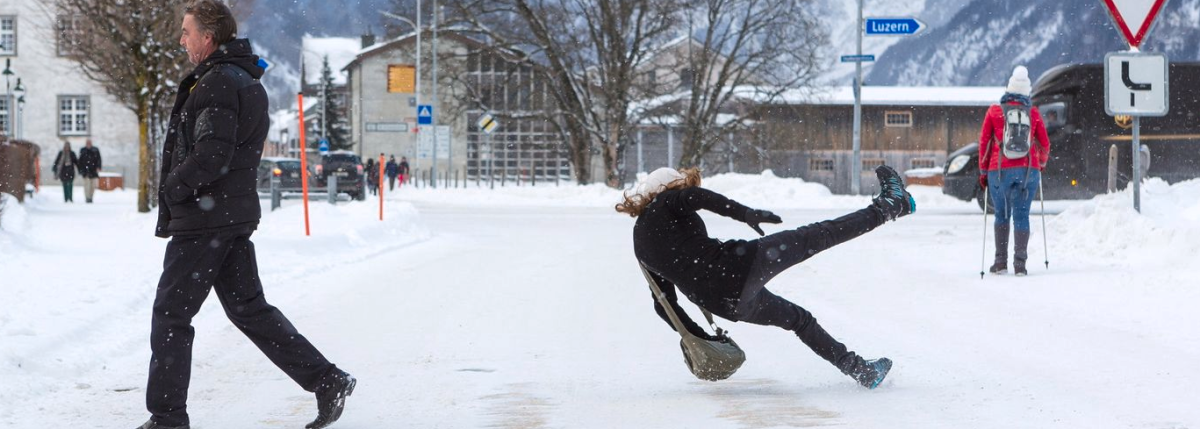 Um Stürze zu vermeiden, empfiehlt es sich, das Gehtempo den Verhältnissen anzupassen, geeignetes Schuhwerk mit rutschfesten Sohlen zu tragen und bei Bedarf Hilfsmittel wie Spikes zu verwenden. Auch das Benutzen von Handläufen auf Treppen sowie das rechtzeitige Streuen von Gehflächen können das Risiko deutlich reduzieren.