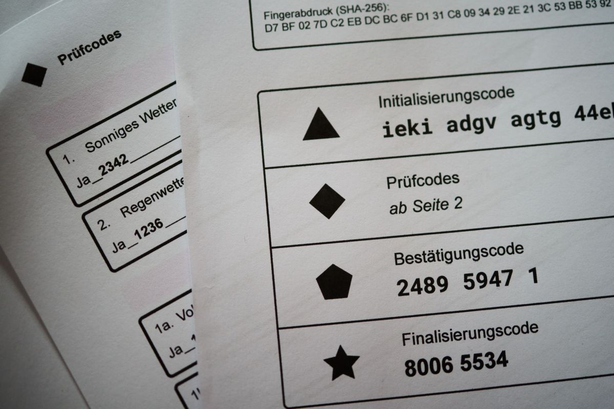 Ün fögl plain codes: L’attest per vuschar digitalmaing chi’s po chargiar giò sülla pagina demo.evoting.ch da la posta fotografia: Michael Steiner).