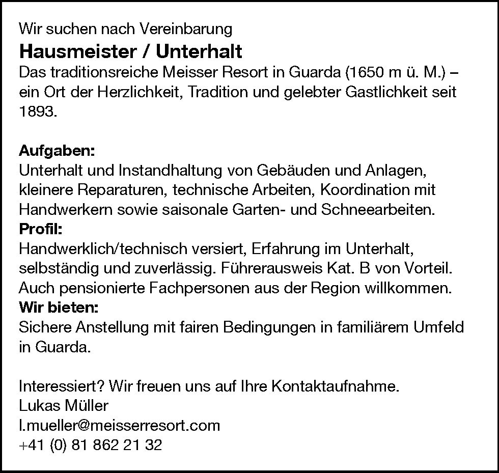Um den Artikel in voller Länge lesen zu können abonnieren Sie die «Engadiner Post/Posta Ladina» oder loggen Sie sich ein. Wir wünschen eine interessante Lektüre.