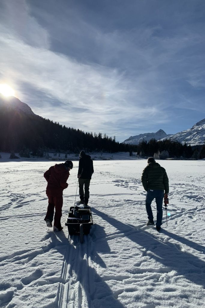Die Tests mit dem neuen Georadar-Schlitten fanden im Dezember auf dem Stazersee statt. Foto: Patrick Blarer