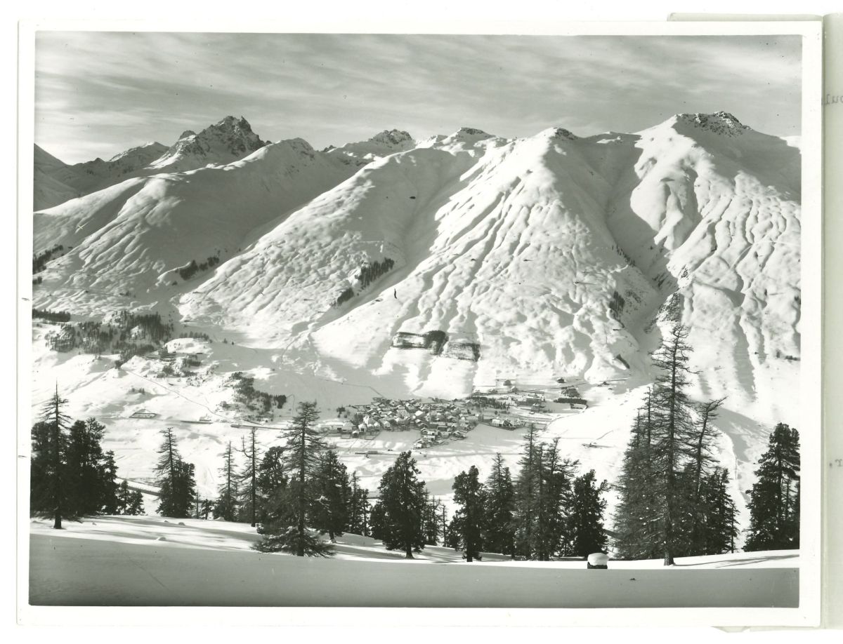 Zuoz und der Albanas-Hang nach der Lawine 1951. Foto: Kulturarchiv Oberengadin