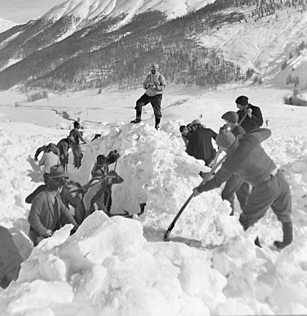 Helfer nach dem Lawinenunglück in Zuoz. Foto: Kulturarchiv Oberengadin/Gustav Sommer
