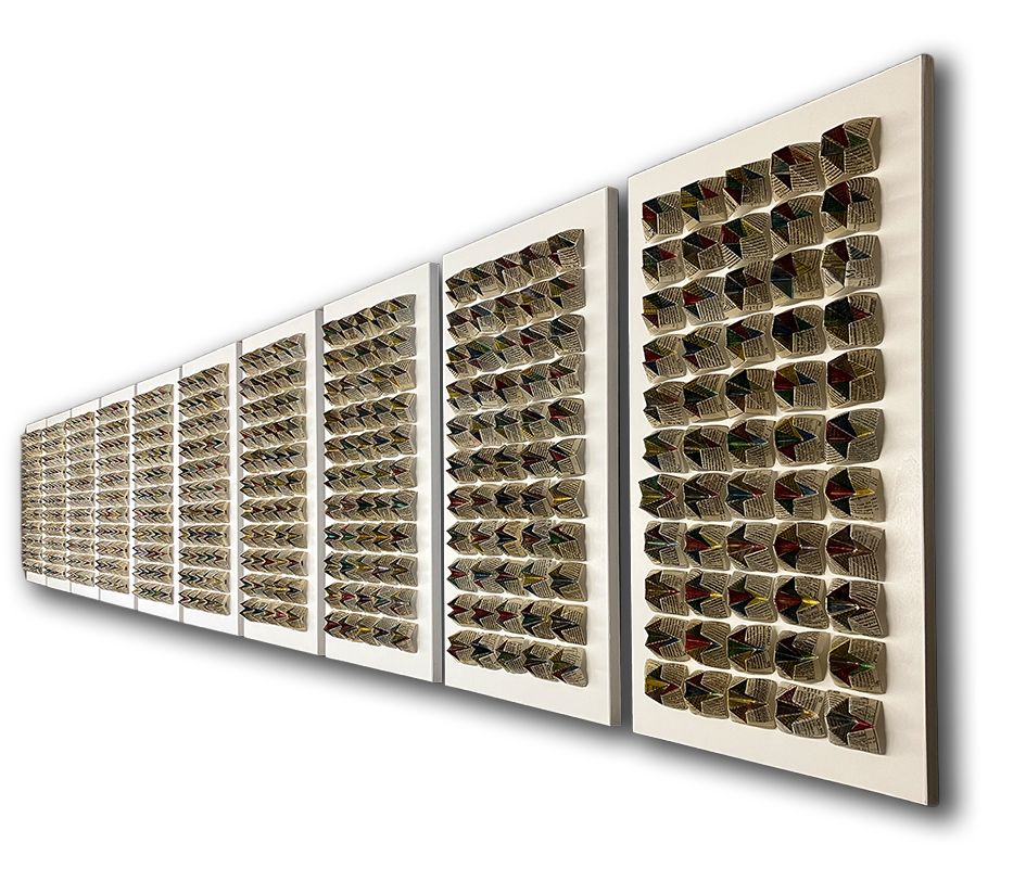 Den Umwandlungsprozess, den Ernestina Abbühl einer alten, halb zerstörten Bibel hin zum fertigen Reliefwerk «urazchun – tschêl ed infiern» unterzog, war lang und erforderte viel Geduld. Foto: Ernestina Abbühl