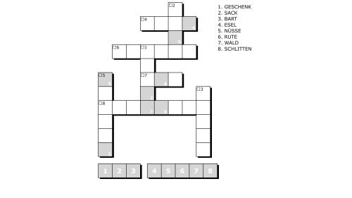 Finde die romanischen Begriffe (Puter) rund um den Nikolaus!