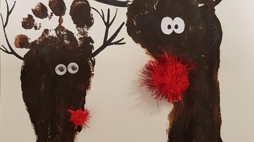 Bedrucke persönliche Rentier-Weihnachtskarten mit deinen Füssen.