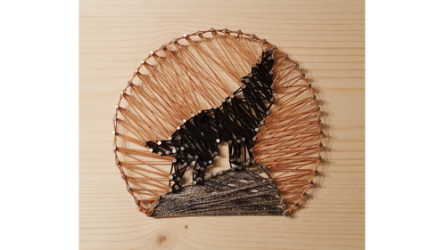 Gestalte dein ganz persönliches Fadenbild mit Wolf, Mond und Stein.
