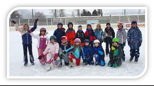 Mmmm... Lecker! Ein Hockeyfeld als Dessert. Die 4. Klasse aus Samedan ...