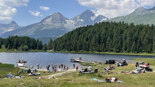 Wenn Hunderte von Menschen am frühen Morgen zum Lej da Staz pilgern, ...